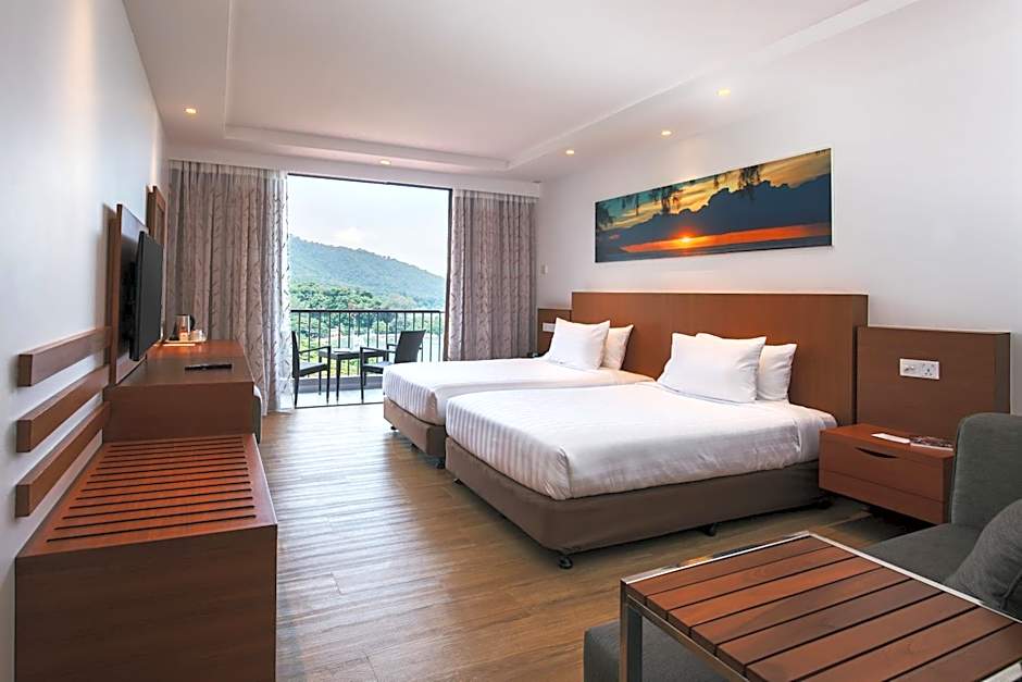 This air-conditioned deluxe twin room features a private balcony that opens up to partial views of the hill. The seating area is fitted with a flat-screen TV and a desk. The private bathroom includes shower facilities and a hairdryer. Ironing facilities are available.