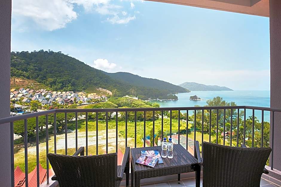Perched along Batu Ferringhi Beach, this 4-star retreat blends seaside scenery with mountain views and landscaped gardens. Upper floors are accessible by elevator, and balconies invite lazy mornings with a salty breeze. An outdoor pool and a separate kids’ pool provide splash-ready fun, while en-suite touches such as a bidet, bathtub, and free toiletries add a touch of comfort.